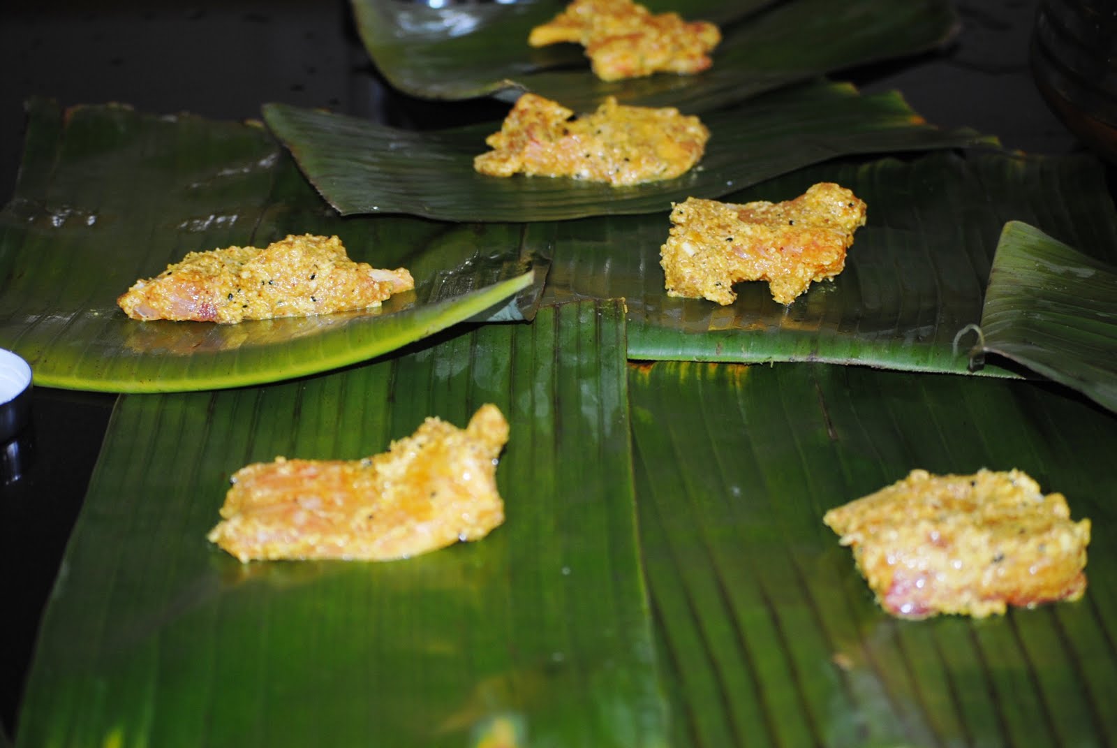 2. Oil individual banana leaf pieces and wrap the fish fillets in them, securing them with toothpicks. Then steam for about 20 -25 minutes till the fish is cooked but still moist and just flaking.