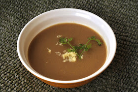 I found a great savoury pudding recipe from Mark Bittman which I adapted to make a bake for the dinner itself. But the French bread was languishing the day after and getting harder everyday. So I looked around and found that soups were another great way of using up leftover bread! And this soup is so good, I would gladly buy fresh bread to make it! A great find by the way for someone like me who loves soup - The Joy of Soup